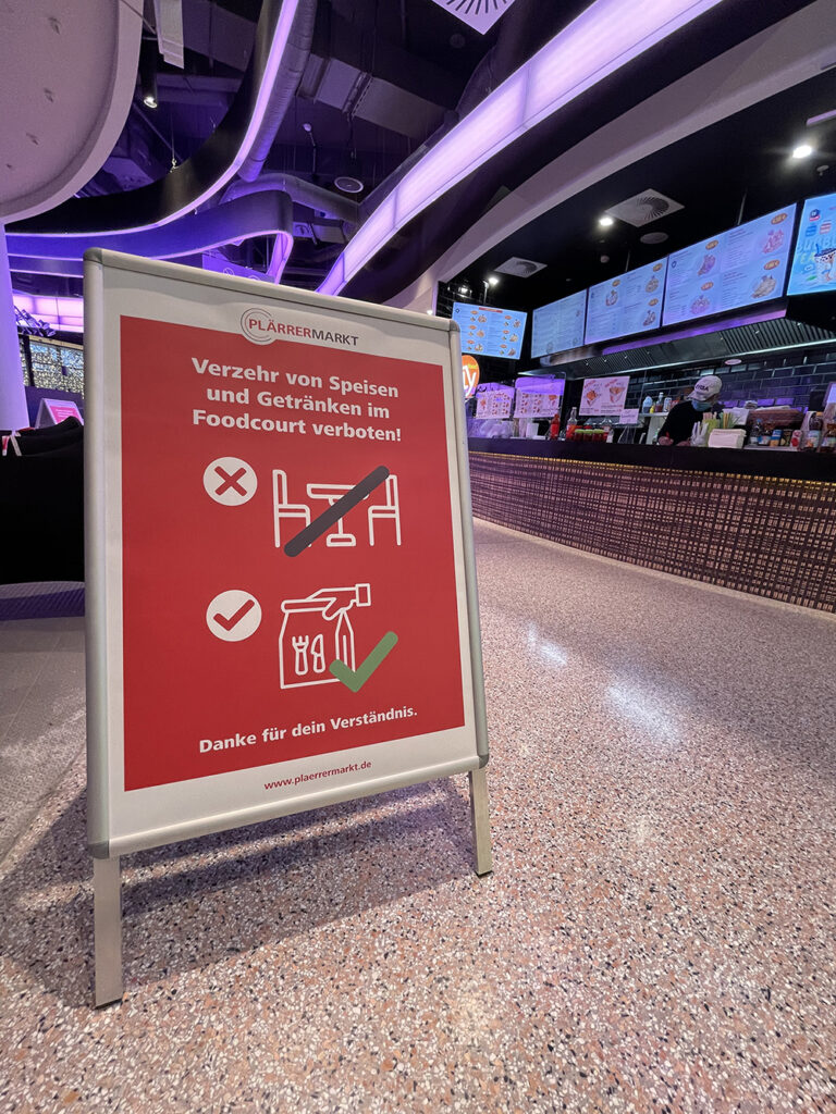 Im Nürnberger PLÄRRERMARKT bleibt weiterhin der FOODCOURT mit seinen verschiedenen Kulinarik-Angeboten geöffnet.